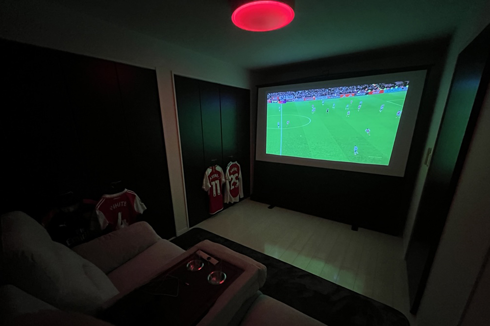 試合前には湯船にお湯をためてゆっくり浸かり、自宅に作ったプロジェクター付きのシアタールームで観戦します。この時間があるから、忙しい日々も頑張れるんです。