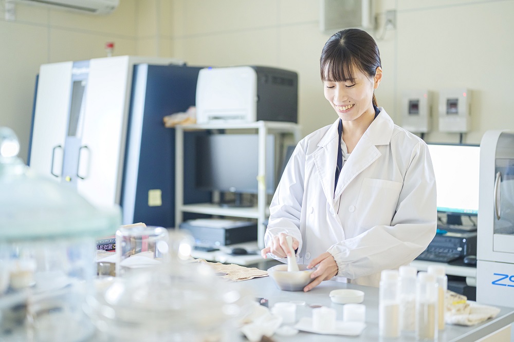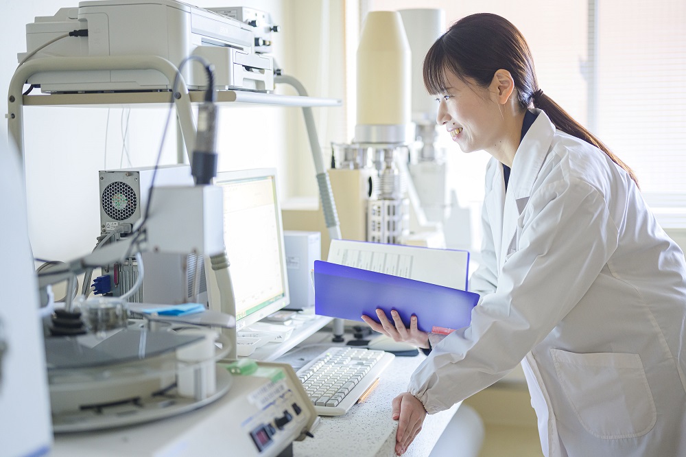 化学職は、経済分野の産業振興だけでなく、環境分野の公害対策など、幅広い分野で専門性を発揮できる職種です。環境分野の部署に所属していたときは、水質調査や土壌汚染対策などを通して、県民の生活環境を守るという大きな使命を感じながら業務に取り組んできました。現在所属している経済分野の部署では、企業の方々と連携しながら、地場産業の発展を技術面から支えられるよう、業務に励んでいます。数年ごとの異動によって、まったく異なる分野を経験することもありますが、上司や同僚のサポートを受けながら、どの部署でも前向きに取り組むことができています。