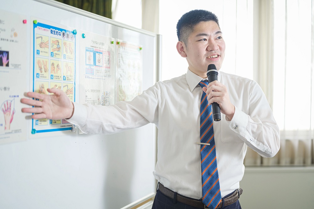 薬務衛生課の食品衛生係に所属し、食品衛生や食の安全に関わる業務を担当しています。学生や一般の方を対象にした食の安全に関する講習会を開催しており、微生物学や感染症学、公衆衛生学などの知識を基に食中毒の原因や防止策、手洗いの重要性などを伝えています。講習会では「参考になった」と声をかけてもらえることもあり、やりがいを感じています。その他にも、食中毒防止のための啓発資材やプレスリリースの作成、食品衛生月間に合わせたリーフレット作成やホームページでの情報発信を行っています。また、複数の自治体に関わる食中毒や違反食品の調査が発生した際には、他自治体との連絡調整も行い、迅速な対応を心がけています。